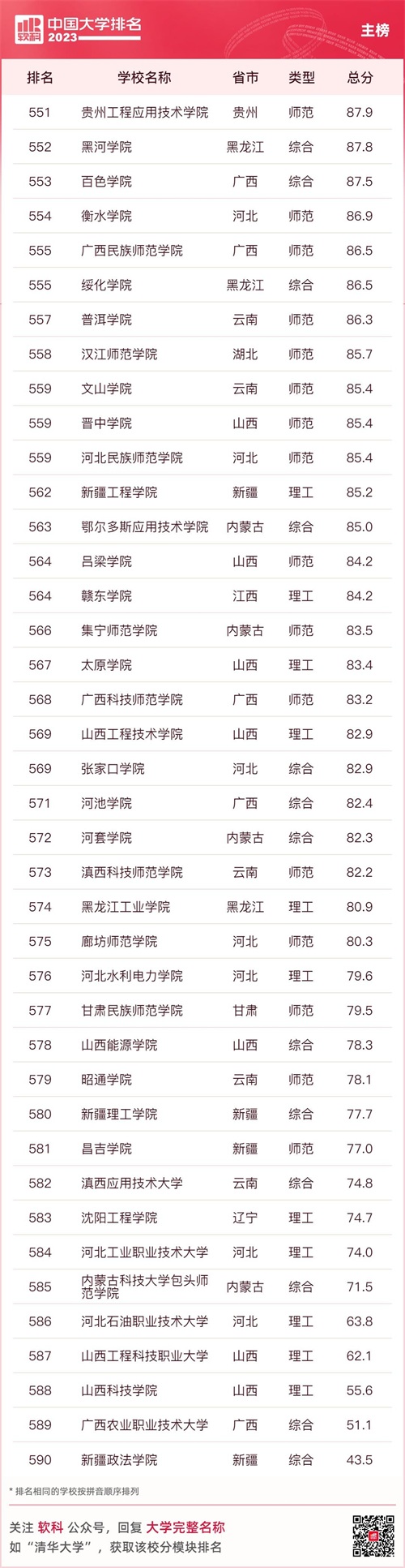 2023软科中国大学排名(主榜)