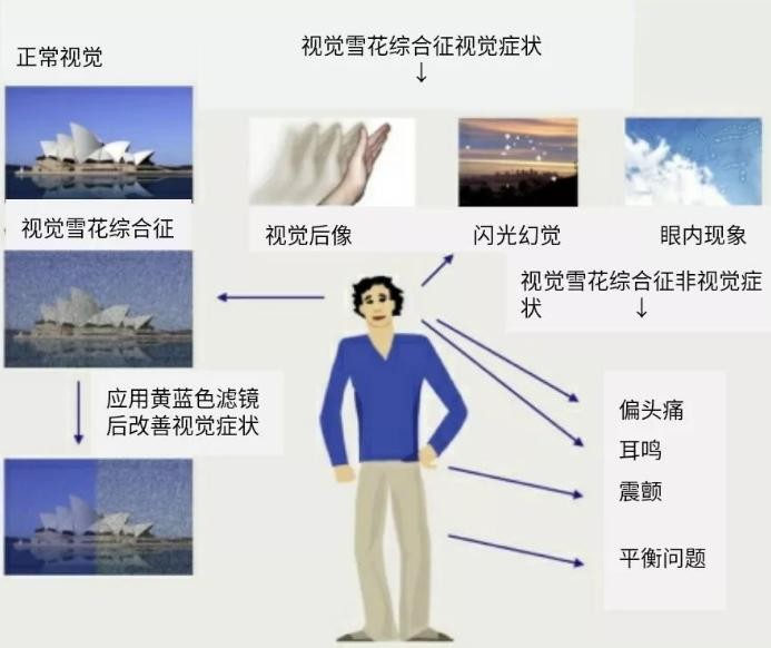 图 视觉雪花综合征及非视觉症状,应用黄绿色滤镜后视觉症状改善