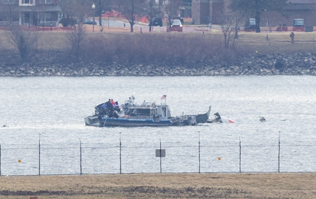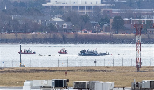 1月31日,搜救人员在美国华盛顿里根国家机场旁的波托马克河上工作。新华社记者 胡友松 摄