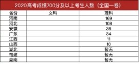 2020年全国高考(全国一卷)成绩700分以上的人数