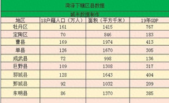 在菏泽下辖的9个县区中,牡丹区不仅人口最多达到161万,经济也是在9个县区中最强的,GDP总量达到767亿,即将冲刺千亿档次;而面积最大的这是曹县,面积达到1974平方千米。