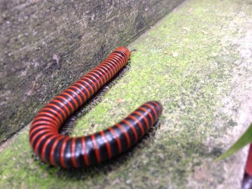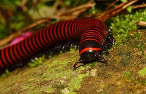 马陆虫其实就是我们常说的“千足虫”,它的身体有多节组成,每一个节都长有一对脚,生活在潮湿的地方,因为啃食植物幼苗。所以被看作是害虫,一般的体长为十几厘米,已发现的最大的马陆虫体长可达38厘米。