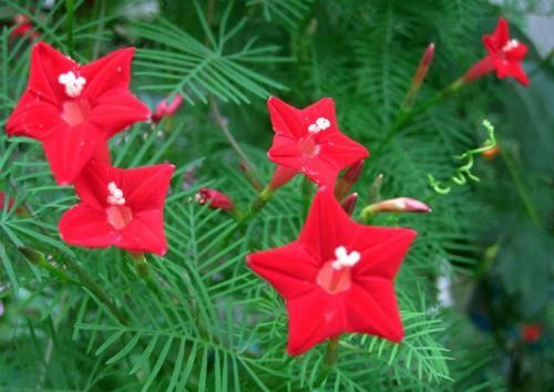 茑萝,又名密萝松,也叫五角星花,狮子草等,是原产墨西哥的茄目旋花科植物,早在春秋时期的《诗经》中就有描述茑萝的诗句:“茑为女萝,施于松柏。”,此外茑萝还是著名的温室观赏性植物,一般采用种子繁殖的方法,接下来为大家介绍一下盆栽茑萝种植的技巧。