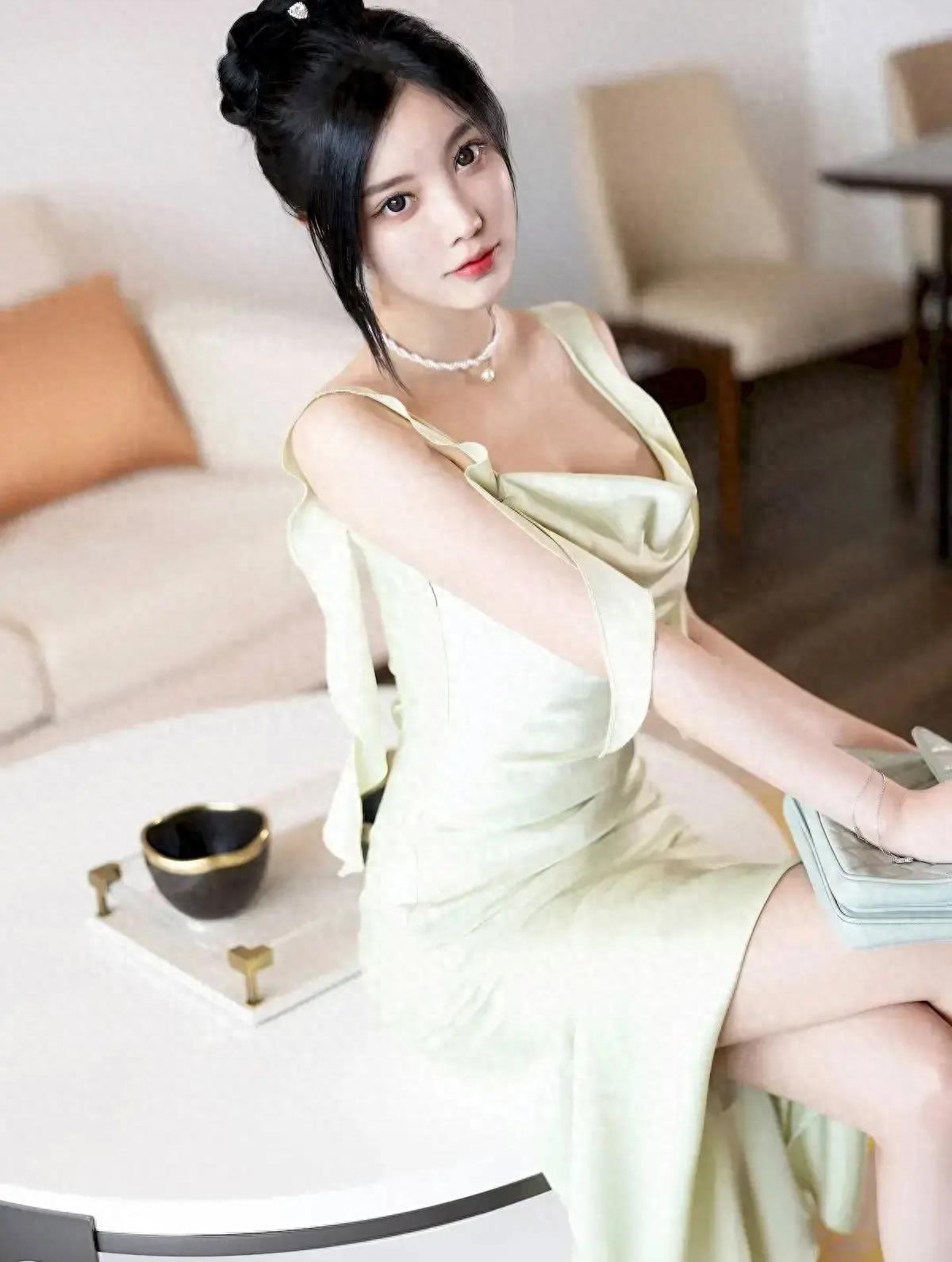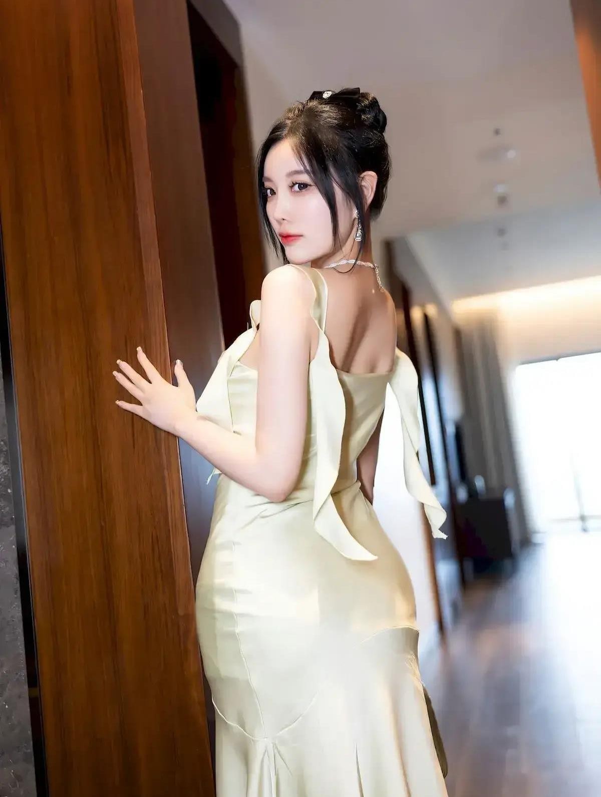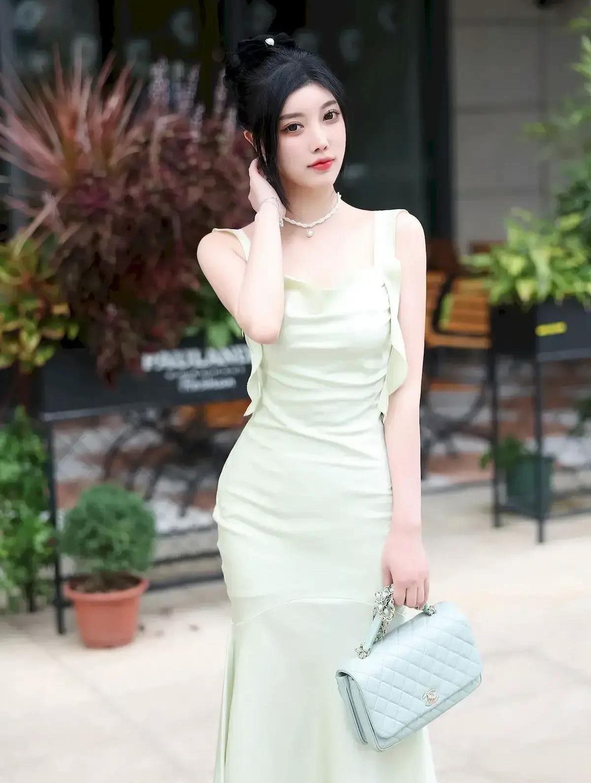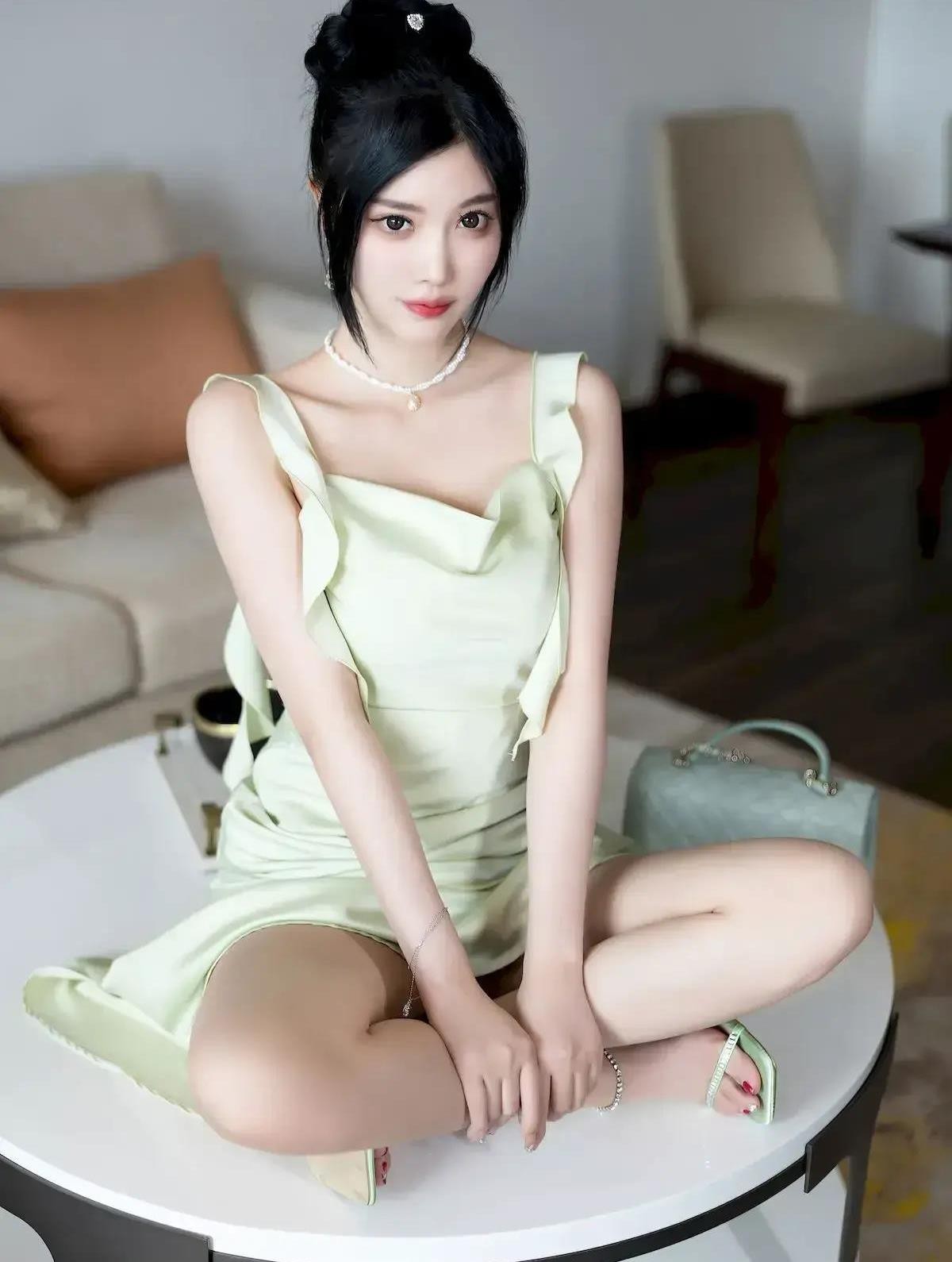 女神杨晨晨淡绿色长裙白丝写真(73)