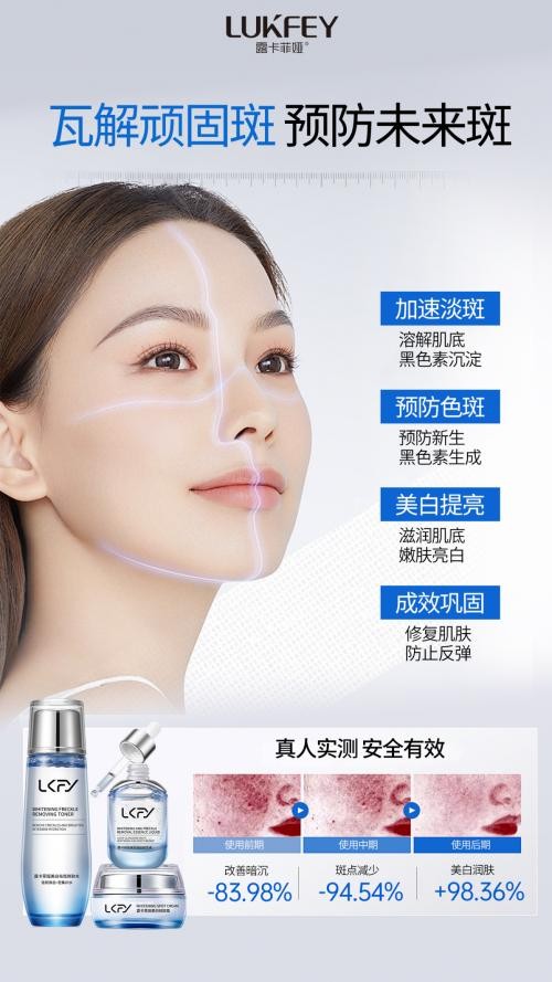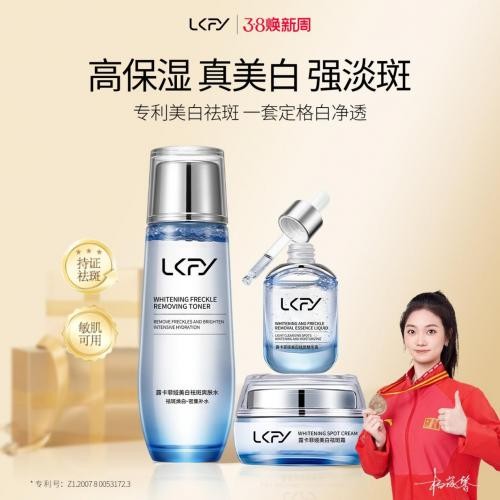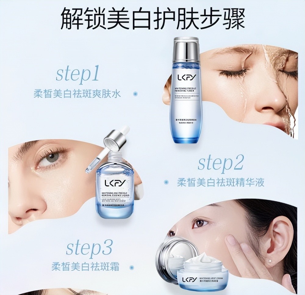 这款露卡菲娅祛斑套装是一个祛斑三件套,每天早晚使用时,先用爽肤水补水并调节肌肤pH值,为后续护肤打基础。接着涂富含高浓度祛斑成分的精华液,深入肌肤底层抑制、分解代谢黑色素。最后用质地醇厚的祛斑霜,在肌肤表面形成保护膜,锁水锁营养,巩固护肤成果。从清洁到修复再到滋养,套装每一步紧密相连,助肌肤告别色斑困扰,恢复光彩。