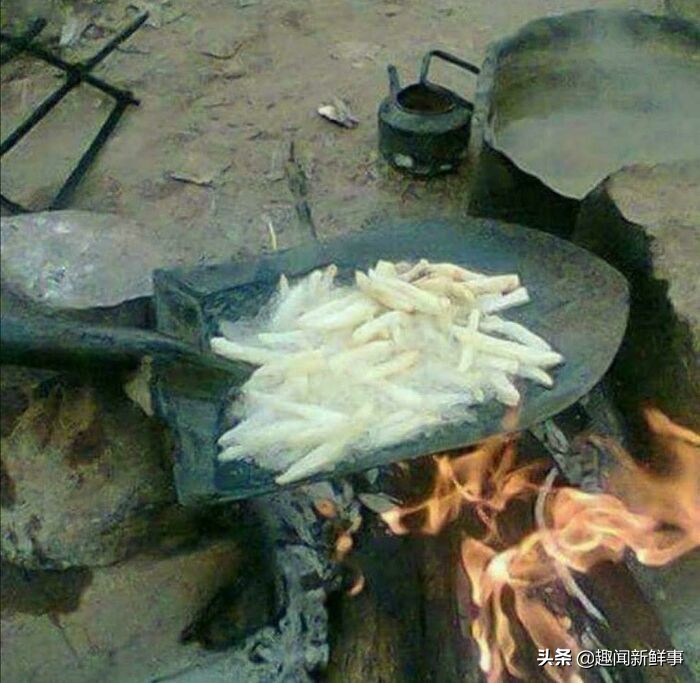 20.铁铲当锅用,炒菜,油炸两不误。
