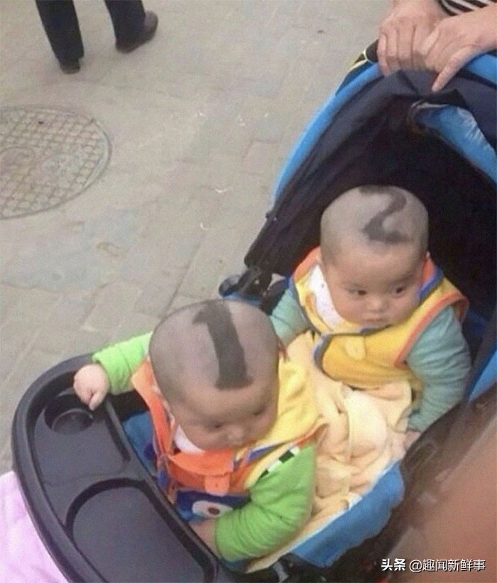 5.给双胞胎宝宝剃这样的发型,也在不用担心别人问谁大谁少了,一目了然。