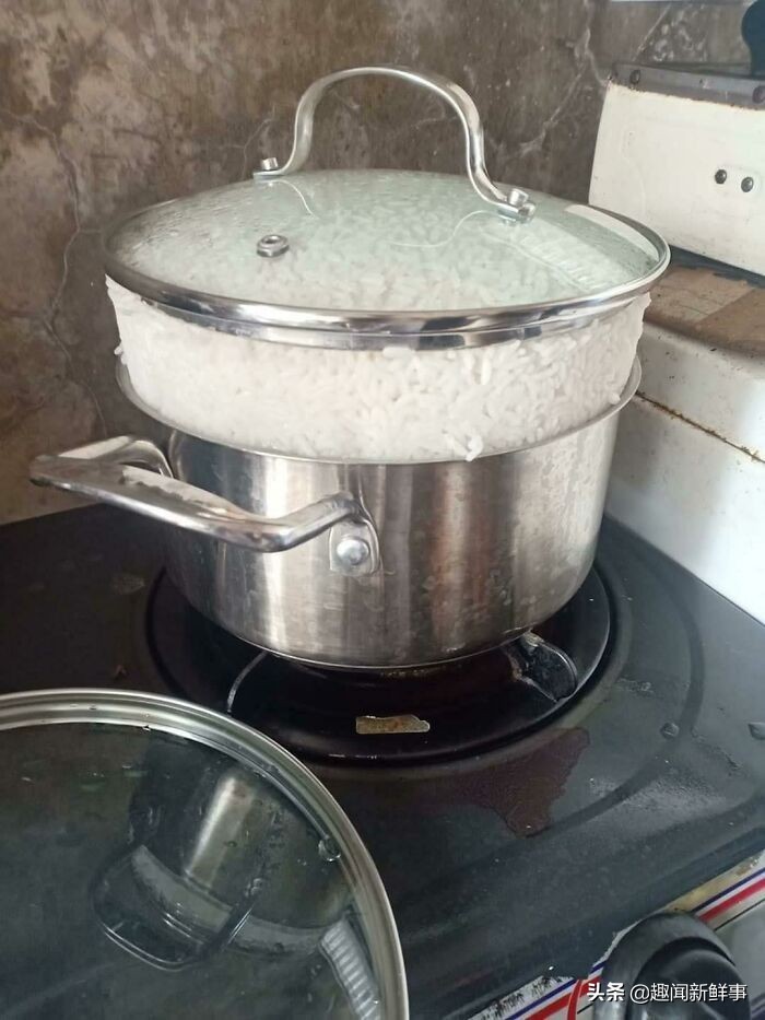 18.直接把盖子顶起来,这煮米饭的技术太厉害了吧。