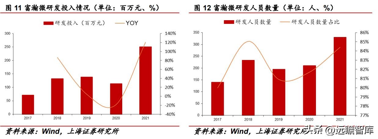 公司重视研发创新。公司研发投入整体呈现上升趋势,从2017年的 71.13 百万元上升至2021年的 250.39 百万元,且研发投入在营业收入中的占比较高,2021年为 14.58%。此外,近两年来,公司研发人员数量有明显增加,从原来的140人左右增加至目前的 330 人,且研发人员占比较高,长期维持在公司员工数量的 80%以上。
