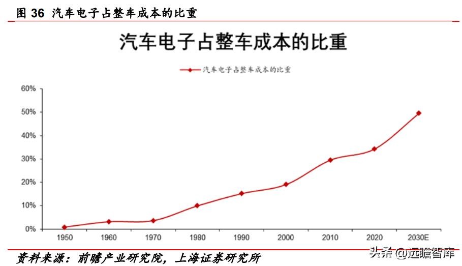 在此背景下,汽车电子在整车制造中的重要性日益提高。前瞻产业研究院指出,汽车电子在整车制造成本中的占比不断提高,预计2030年将达到 50%。