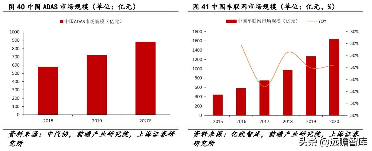 此外,车联网的普及也带动了汽车电子市场的繁荣。亿欧智库数据显示,2015-2020年,中国车联网市场规模从 442 亿元增长至 1637 亿元,年均复合增长率为 29.91%,增速较快。