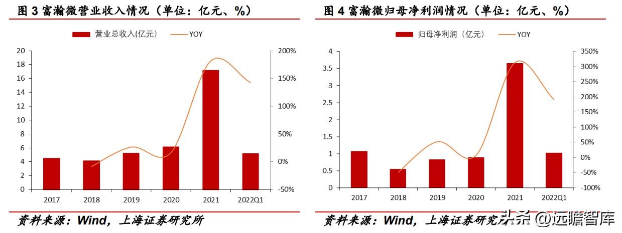 2017-2021年,公司营业收入从 4.49 亿元上升至 17.17 亿元,年均复合增长率为39.84%;归母净利润从1.06亿元上升至3.64亿元,年均复合增长率为36.13%。