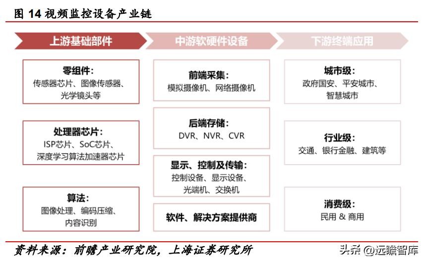 此外,硬件设备还要辅以系统管理软件。视频监控产品的下游应用较为广泛,除了消费级应用外,还包括政府国安、智慧城市等城市级应用和交通、金融、建筑等行业级应用。