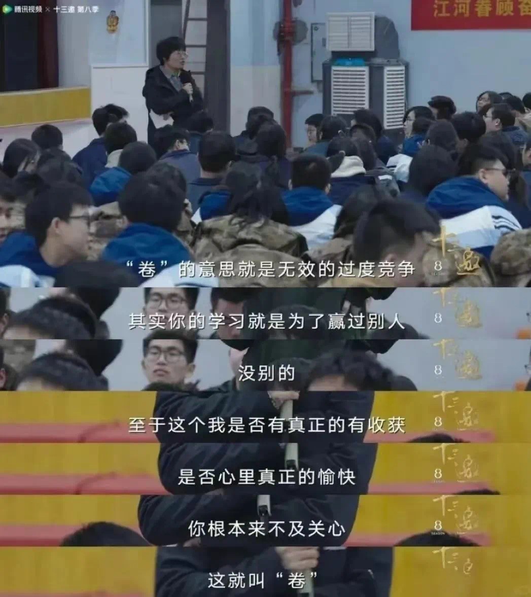 同样在秋天,教育话题再次引发热烈讨论。访谈节目《十三邀》中许知远对话北京大学教育学院副教授林小英,有学生问林小英:“国内教育是否真的太卷了?”林小英没有犹豫地回答:“就是。”她认为分数已成为唯一的衡量标准,“如果把高一到高三的生活浓缩成一个小时,就能看到学生的生命力如何慢慢萎缩,一荣一枯。”“人一生真的不能只是为了谋生,做那些不为谋生而做的事越多,越能感到幸福,否则,你的人生就成了苦役。”节目播放后,对话截图迅速传播,不少家长评论认同内卷无意义,但也发问,不卷后的道路又在哪里。