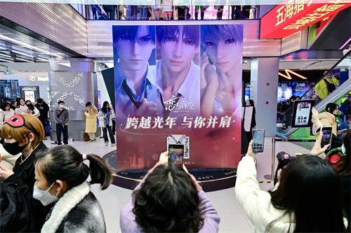 2024年2月24日,上海,手游《恋与深空》在上海南京东路百联ZX商场举办线下展示活动,吸引了大量玩家前来打卡拍照。