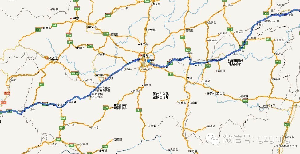 沪昆高速公路,是上海到昆明的高速公路,代号G60,是从上海到昆明的连接线。全长2355.9公里。途经城市:上海-杭州-金华-衢州-上饶-鹰潭-南昌-宜春—萍乡-株洲-湘潭-邵阳-怀化-贵阳-安顺-六盘水-曲靖-昆明,全长2730公里。贵州境内包括:贵阳—清镇—安顺-六盘水。