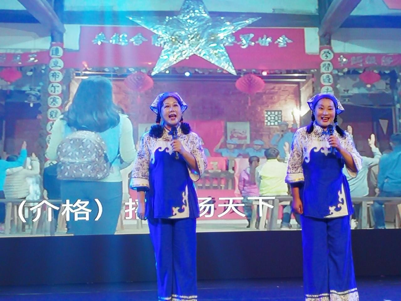 在本届世界客属恳亲大会上,巫妃梅与被周恩来总理亲切地称为“广东的郭兰英”的著名“客家山歌皇后”老艺术家何穗生,率领广东深圳山歌队,为参会的全球客家乡贤带来了精彩的客家山歌表演。
