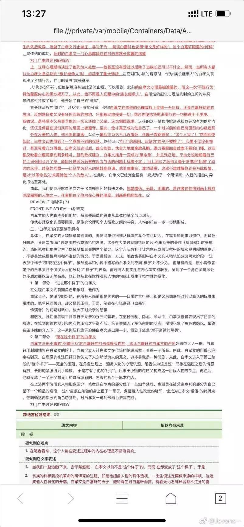 另据北京青年报报道,翟天临的《谈电视剧<白鹿原>中“白孝文”的表演创作》一文2月10日已经被知网上撤下。