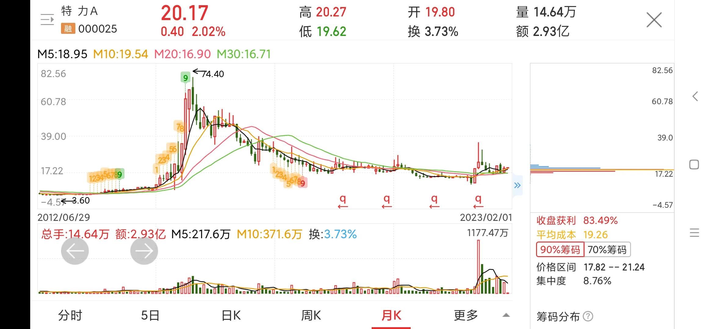 看月线,我们才知道特力A为什么会成为妖股的代名词,前面一波上涨翻了将近20倍,这可能是有些人一辈子都不能企及的高度,后面这一波短时间又翻了3倍有余。特力A的历史永远不缺涨停板,有妖股基因,这就是一部分人不顾风险趋之若鹜的原因。