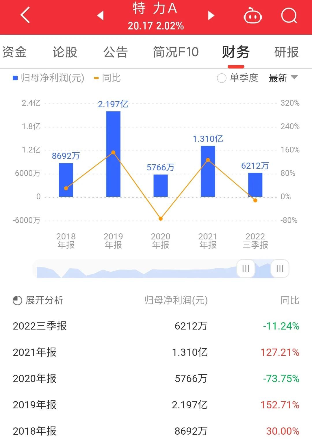 特力A2022年三季报:2022年前三季度,公司营业总收入6.72亿元,同比上升74.06%,归母净利润6211.76万元,同比下降11.24%。按本报告期单季度数据看,本季度营业总收入4.22亿元,同比上升208.86%,本季度归母净利润1863.74万元,同比下降26.75%。本次财报公布的各项数据指标表现一般。