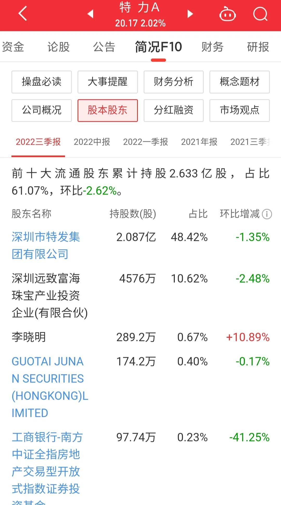 深圳市特力(集团)股份有限公司于2022年12月26日公告:股东深圳远致富海珠宝产业投资企业(有限合伙)持本公司股份36,612,932股(占本公司总股本比例8.49%),股东远致富海计划以集中竞价交易或大宗交易方式减持公司股份合计不超过25,863,499股(占本公司总股本比例不超过6%);其中以集中竞价交易方式减持不超过8,621,166股,即不超过总股本2%,在本公告披露之日起15个交易日后的六个月内实施;以大宗交易方式减持不超过17,242,332股,即不超过总股本的4%。