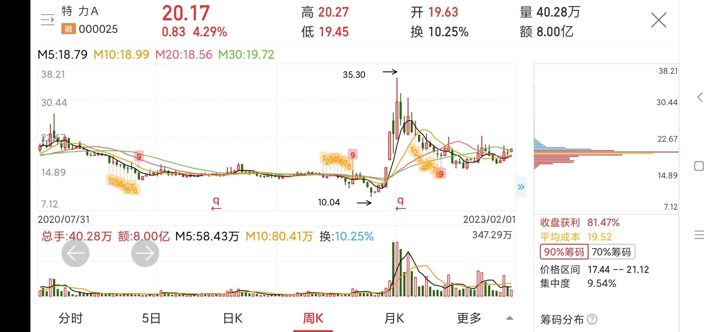 周线,股价在底部反弹了三次,每次都到23元附近,没有形成强力突破,可见上方压力位置在23元附近,突破并站稳23元才会有新高度。筹码分布显示下方新进大量筹码,不排除主力建仓可能。