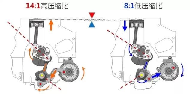 那么可变压缩比又是怎么形成的呢?通俗来说日产就是在同样的活塞做工行程不变的情况下,对活塞的止点位置进行改变,这就会使得气缸顶端空间变大或者变小,这也就压缩比改变的原理。当然了,日产天籁的这台代号为KR20发动机的最高可变压缩比达到了14.1,这对于发动机的抗爆震要求特别高,所以搭载这台发动机的高配车型推荐的燃油标号都是95#及以上。