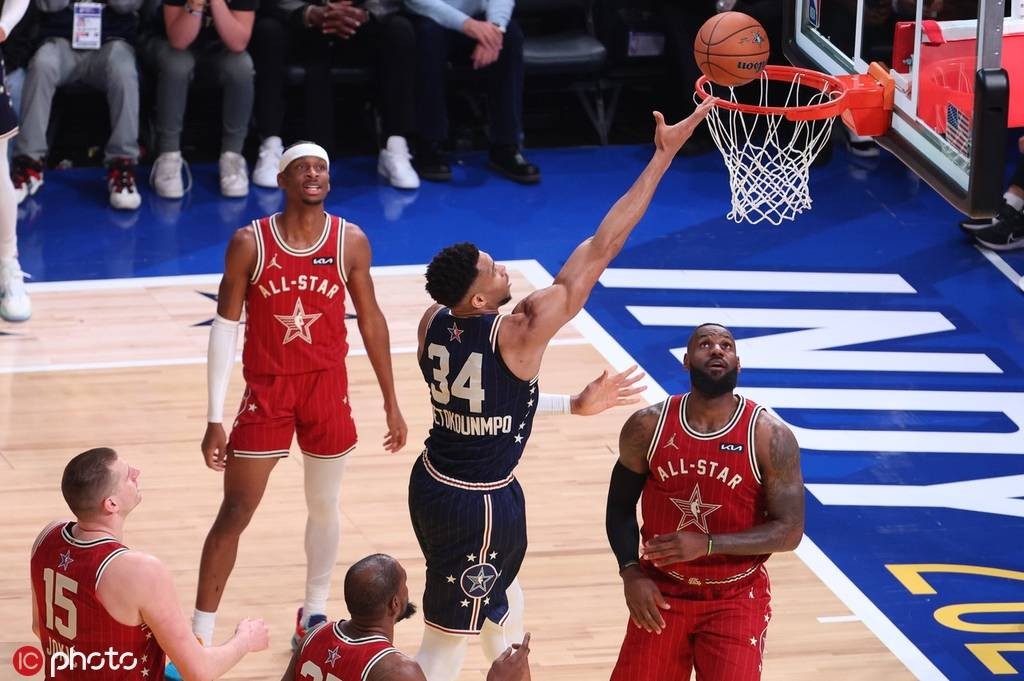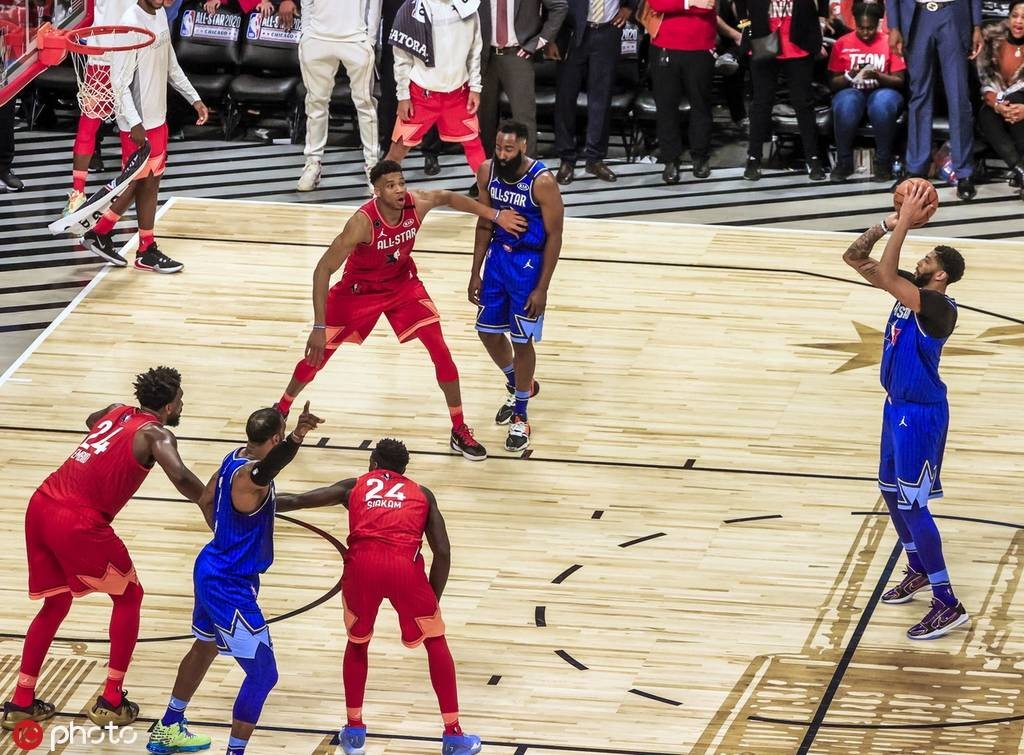 一切的源头,似乎要从比赛本身说起。211比186,两队合计近400分,三分球42中97,这或许是有史以来最高产的一场全明星赛。但得分爆炸并不等于精彩,反而让比赛的观赏性一落千丈。因为那已经不再是一场真正意义上的比赛,谁也不想费力气防守,只想一个劲地投球。