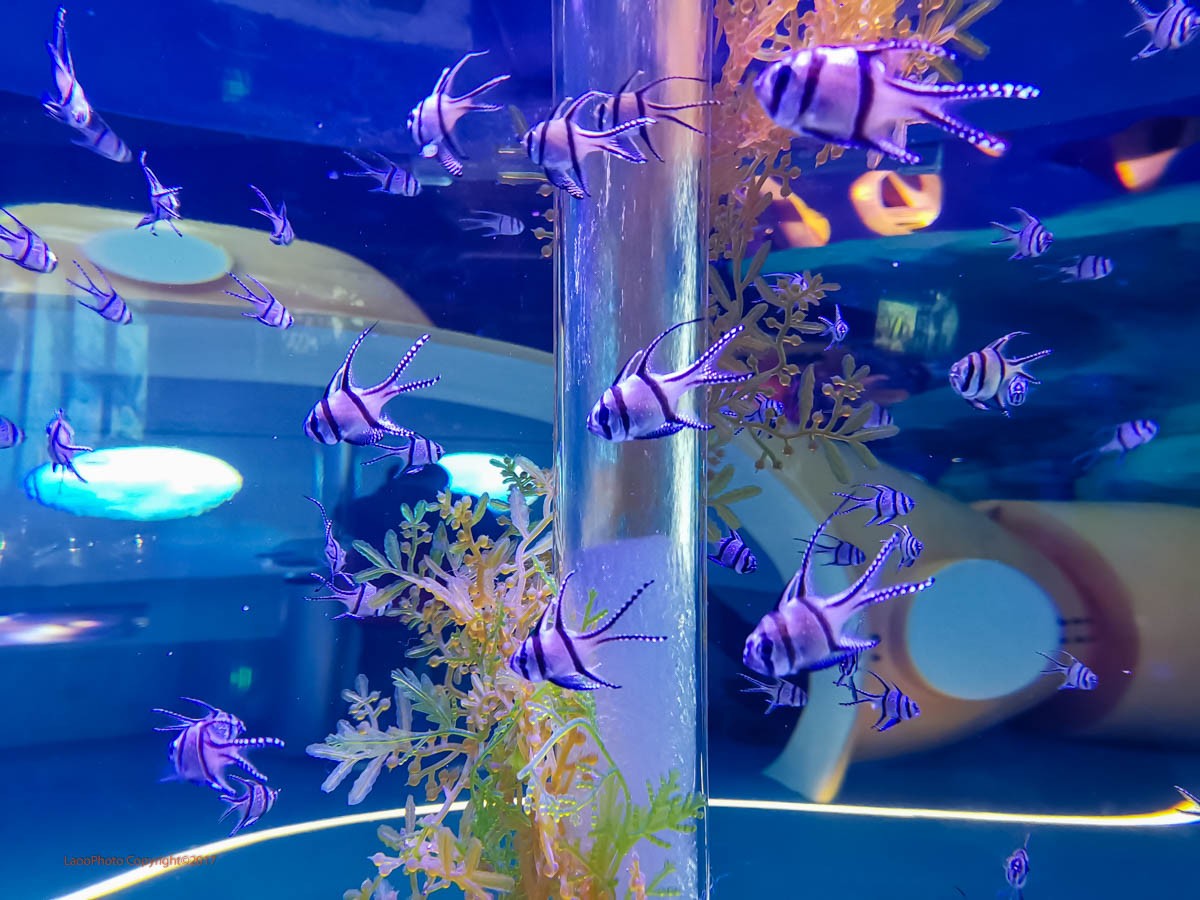 园内的展品就是各种活的海洋生物,小的有海马,海龙,各种色彩艳丽的小鱼,中型的有企鹅,海龟,鳗鳐,海狮,海象,海豚,巨型的有北极熊,白鲸,虎鲸等庞然大物。在它们专属或共享的展馆里悠闲地在你身旁或头顶游弋着。