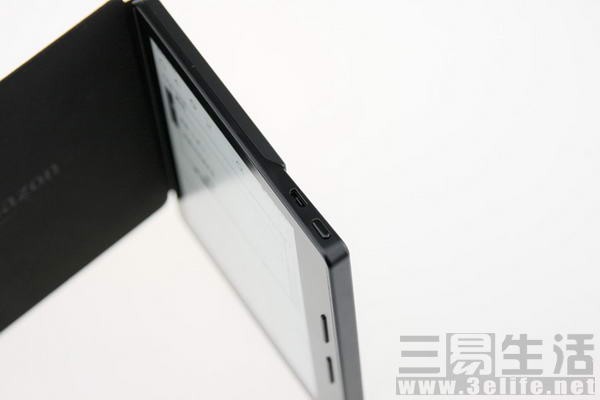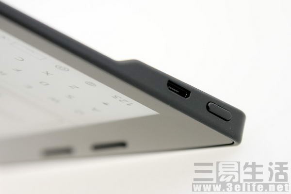 从这张示意图, 可以非常清楚地看出Oasis的左右非对称设计:亚马逊巧妙地将电源键、翻页键和micro-USB接口都置于较厚的“书脊”位置,从而令屏幕位置的厚度达到了前所未有的纤薄(官方数据是仅3.4mm),不仅看上去高级感十足,而且对握持感也做出了重大的贡献。