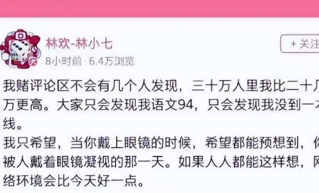 他并没有像人们预期的那样道歉或解释,反而在社交媒体上发布了一条充满不屑的动态:"考得好又怎样?考得差又怎样?人生不只有高考。"