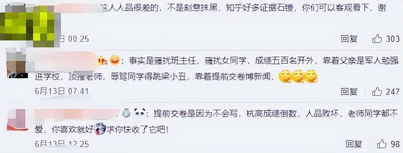 有人相信这些爆料,说:"难怪他敢说考试简单,原来是根本没认真做题。"