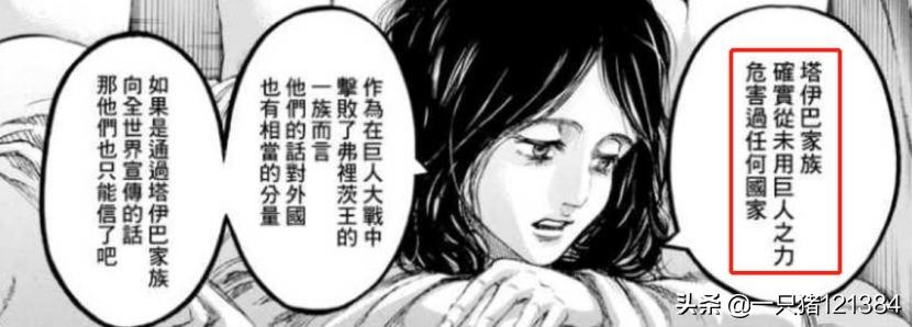 他们并不是为了世界才消灭帕拉迪岛的艾尔迪亚人,只是为了继续维护马莱的霸权!于是听到威利的宣战发言之后,艾伦立刻变身直接拧死了威利,并且也代表帕拉迪岛回应岛外的所有人,你们要战那便战!然后威利死后,艾伦却发现他并不是战锤巨人的持有者,真正的战锤巨人另有其人!
