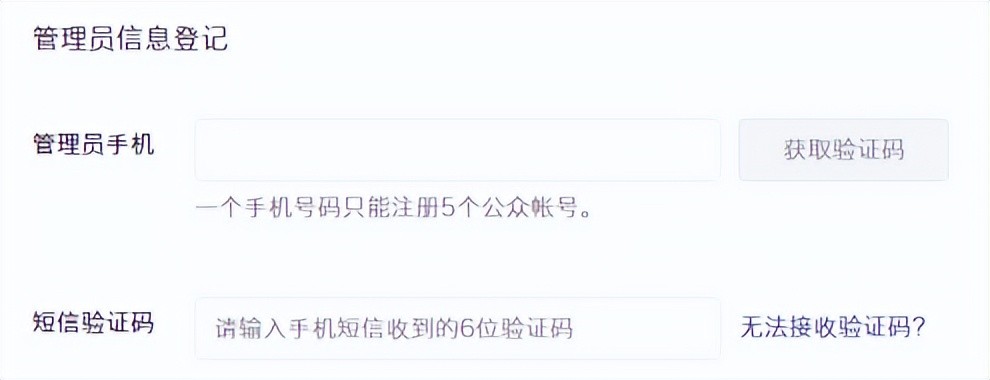 一个手机号可以注册5个公众账号,注意不要超过这个数字。