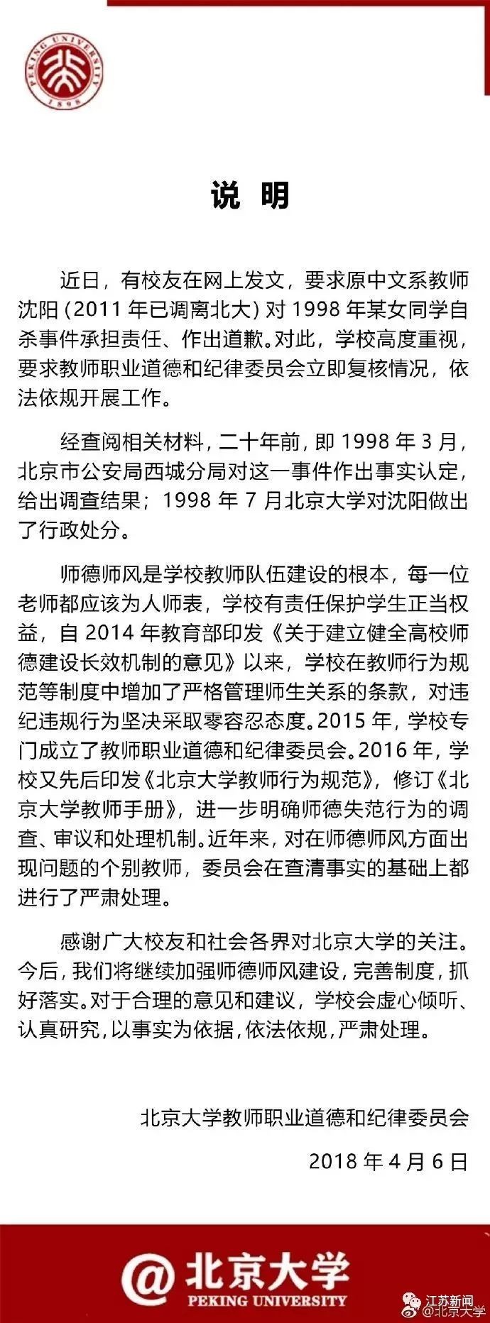 事件发生的第二天,4月6日,北京大学紧急发布事件说明: