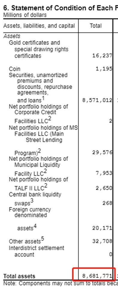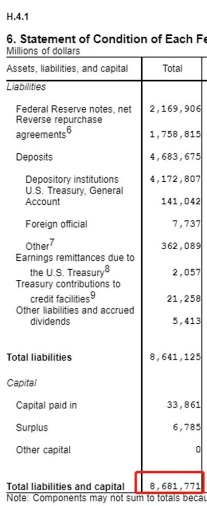 同样,美国的“钱庄”就是美联储,我们看美联储的资产和负债,数目一定也是对等的。