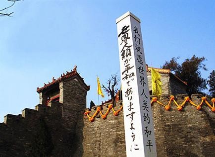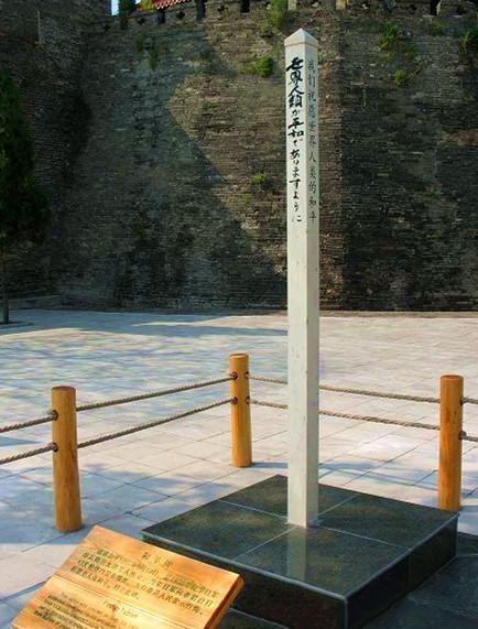 在老君台的下面,有一根白色的方柱,方柱四面分别用日文、简体中文、繁体中文、英文刻写了这样一句话:“我们祝愿世界人类的和平”。方柱的创意来自梅川太郎,一个七十年前侵华日军的炮手。