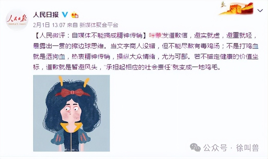 后来得知,在纸媒式微之下,咪蒙辞职创业了,她在深圳创立万物生长影视公司,10个月赔光了400多万,然后破产了。