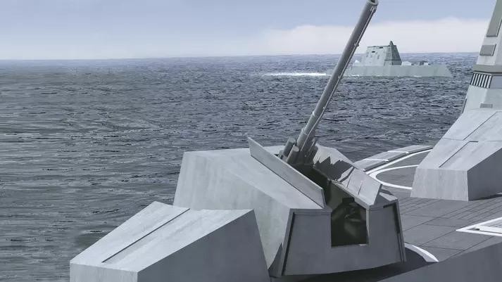 DD-21项目吸引到了两方势力下场角逐。其中,英格尔斯造船厂雷神和波音组成一队,巴斯钢铁造船厂洛克希德-马丁组成了另一队,双方各自拿出了自己的设计方案参与项目竞争。最终,前者的方案获得了认可,DD-21的名字也改成了DDG-1000,也就是“朱姆沃尔特”级。但谁也没有想到,“朱姆沃尔特”级一直强调的先进舰炮AGS,最后会成为了该舰上最大的一个坑和压死骆驼的最后一根稻草。