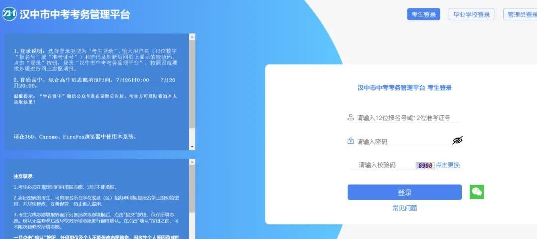 7月30日18时至7月31日上午8时,考生登录临潼区初中学业水平考试招生管理平台(