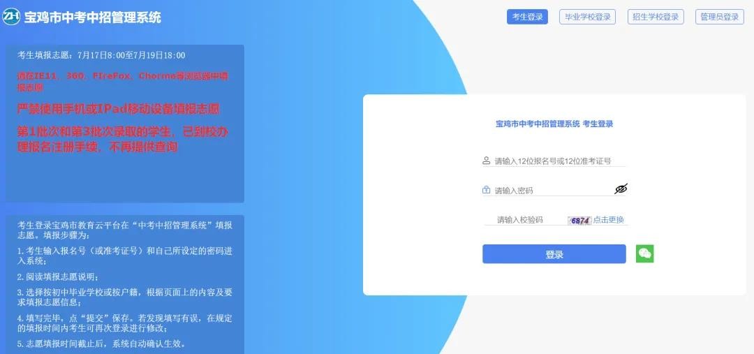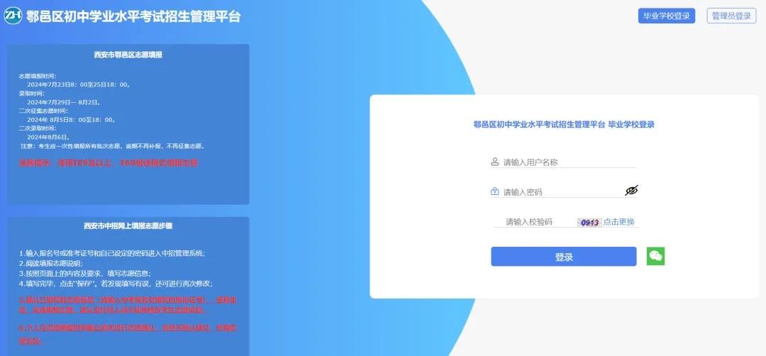 录取结果查询入口:鄠邑区初中学业水平考试招生管理平台 :