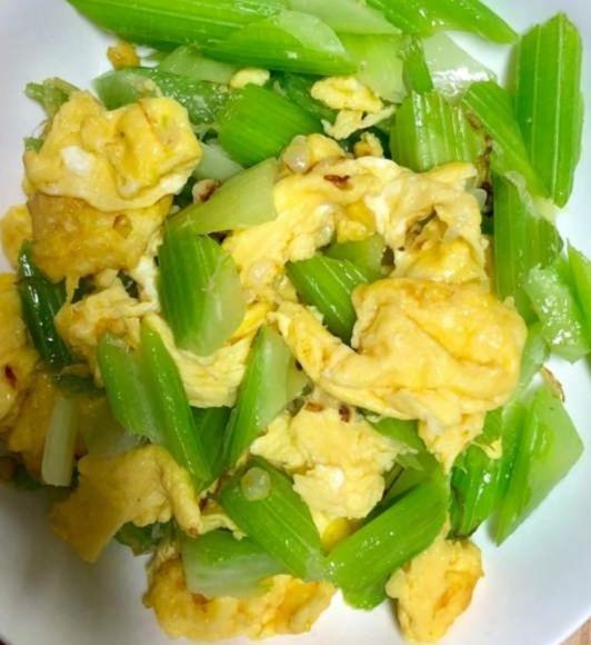 五、锅中放少许的油,葱、姜、蒜爆香,将焯过水的芹菜放入锅中煸炒、在放入炒好的鸡蛋、加食用盐、胡椒粉、鸡精,快速翻炒出锅,装盘即可。