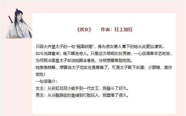 女主是位弱国质女,女扮男装,想要避免前世的悲剧,同时改变自己国家的命运,利用自己的聪慧改变了命运,从一名质女,最后改变了哥哥和自己国家的命运走势,同时解开了前世的不少谜团。还有一本类似的《论公主在敌国的奋斗史》也还可以。