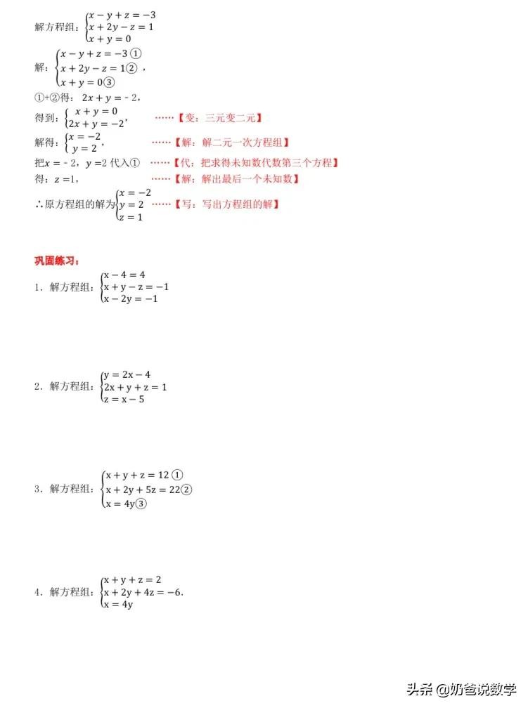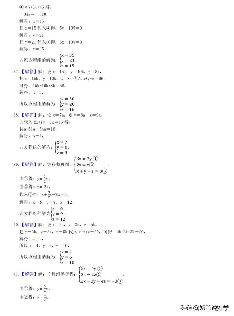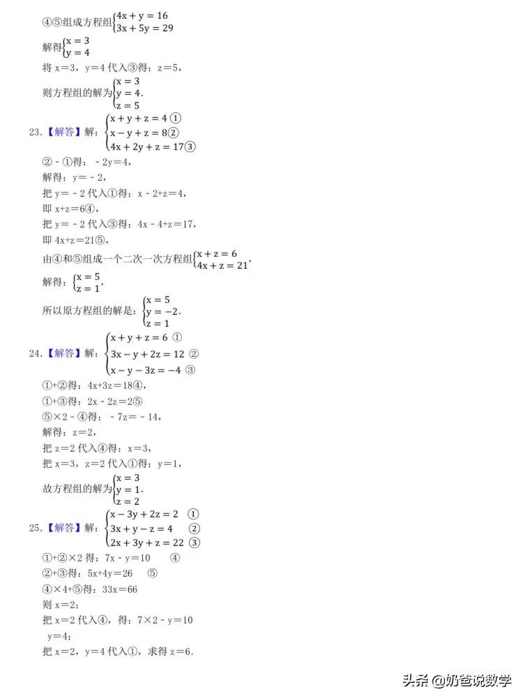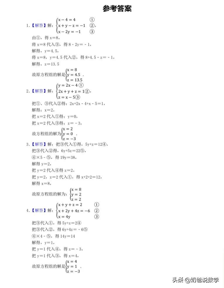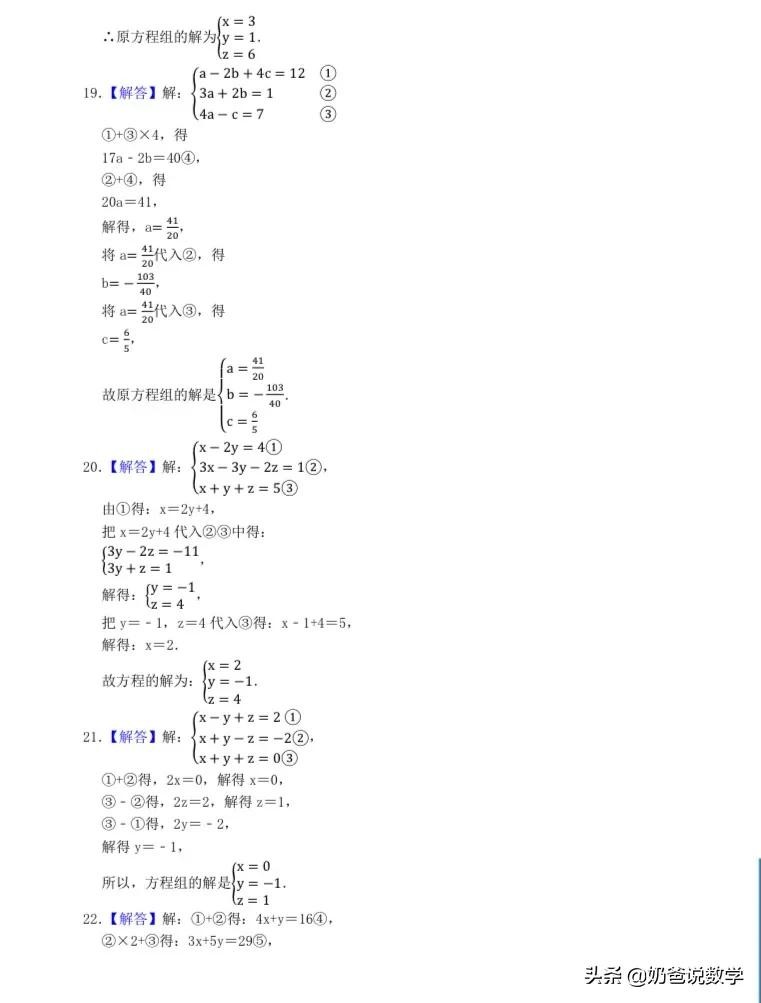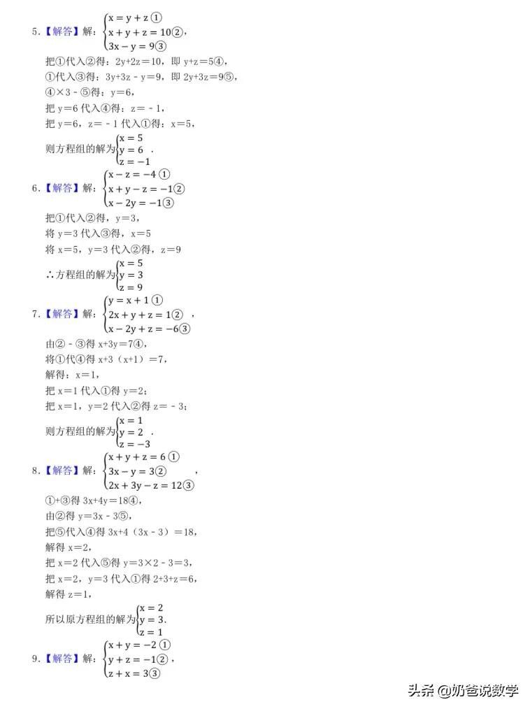 三元一次方程组计算50题,高清晰度可打印含答案