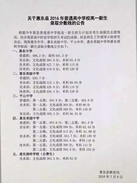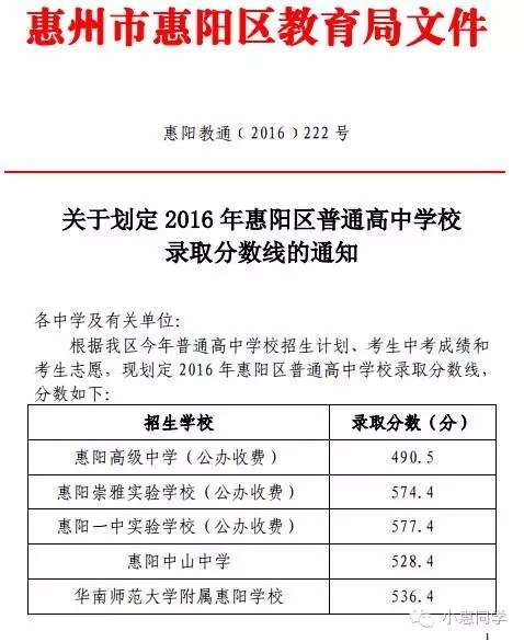 惠州市各高中录取分数线新鲜出炉,家长们快来看!