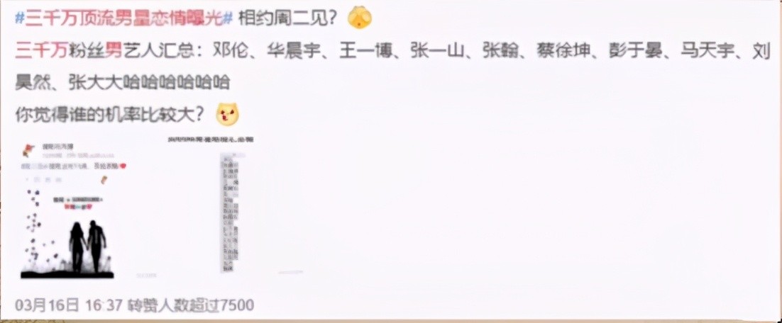 因为在此事发生前一天,有媒体称要爆料一个三千万顶流大瓜,注意,图中明显是一男一女,大家开始坐等3000万男星恋情曝光。