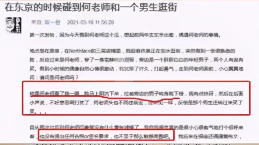 他的这一系列操作也是让网友浮想联翩,这不,立刻就有人发文称两年前在东京街头偶遇何炅与一个男生牵手逛街。