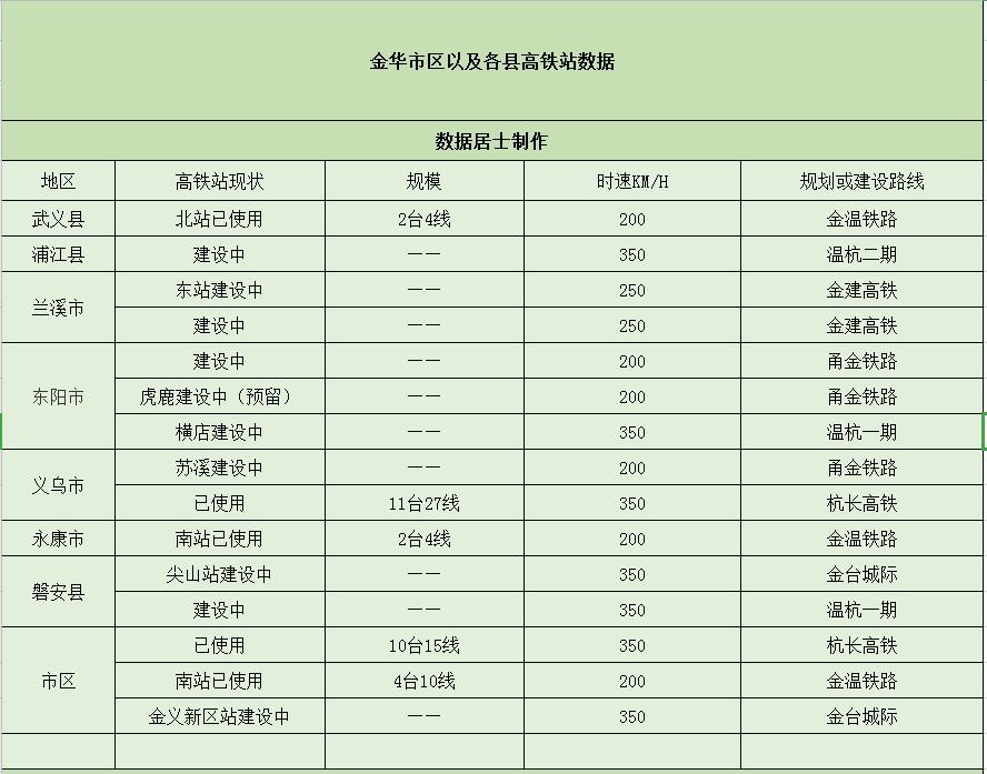 金华拥有15个高铁站,其中10个高铁站在建设中,5个已经在使用
