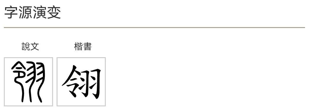 (1) (形声。从羽,令声。本义:翎毛,鸟翅和尾上的长羽毛)