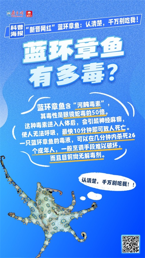 科普海报|“新晋网红”蓝环章鱼:认清楚,千万别吃我!!!